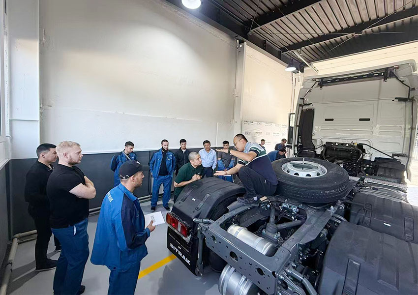 The Sinotruk Academy has developed a localized, systematic training curriculum tailored to the needs of the Kazakh market. To ensure effective training, the Academy incorporates a three-in-one teaching model: theoretical instruction, practical exercises, and comprehensive assessments. From course design and implementation to learning evaluation, participants can perform repairs and troubleshooting operations using real vehicles and simulated teaching aids, fully mastering diagnostic methods and repair techniques for common faults such as electronically controlled engines, automated manual transmissions, and vehicle electrical systems.
